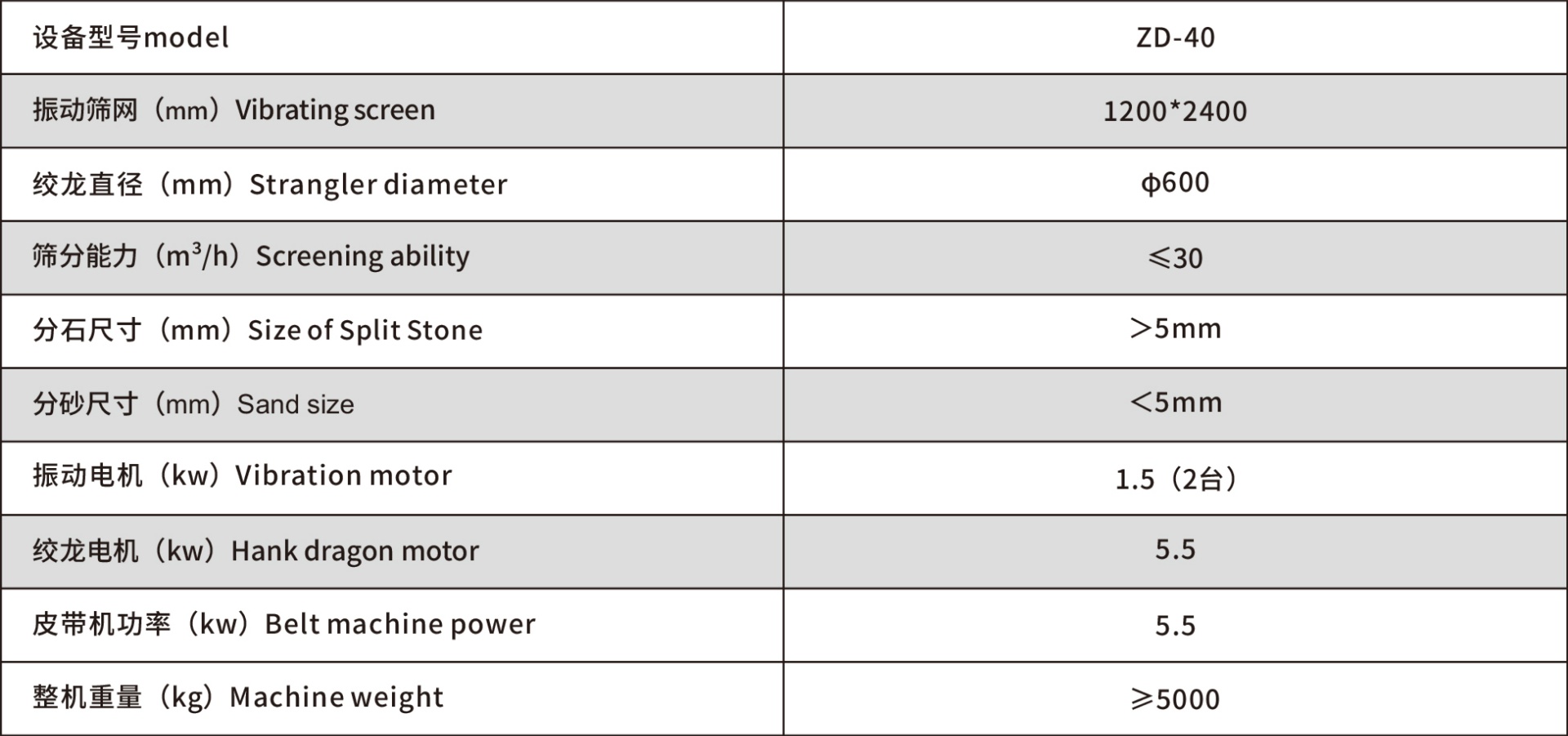 The ZD-40 sandstone separator uses vibration motor excitation as a source of vibration power, so that the material is thrown up on the screen, and at the same time, a linear motion is made forward. The material enters the feed inlet of the vibration screen evenly from the guide tank. High strength vibration sieve is discharged through special specifications sieve. It has the characteristics of low energy consumption , high output , simple structure , easy maintenance , open structure, automatic discharge, etc., and is suitable for the disposal of waste and residues in concrete mixing stations.