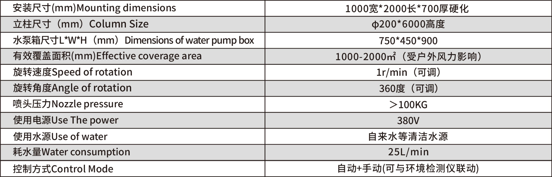 Automatic spray dust system is made by high pressure jet water mist over a long distance, has reached the dust, dust suppression effect, using automated industrial control system, automatic rotation, centered on column makes water cannons spray can rotate 360 degrees, can also according to the requirements provided for Angle rotating spray, dust suppression effect is obvious, with a range of effective control, flexible use, have very strong practicability.